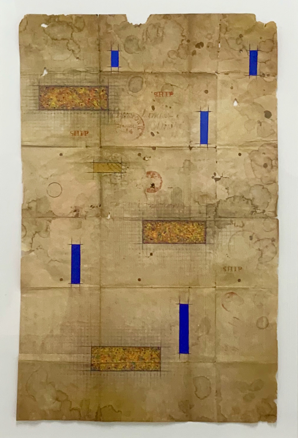 "Telegram", Gouache, ink, pencil, on found paper, 15" x 9", 2011 (DEN1015)