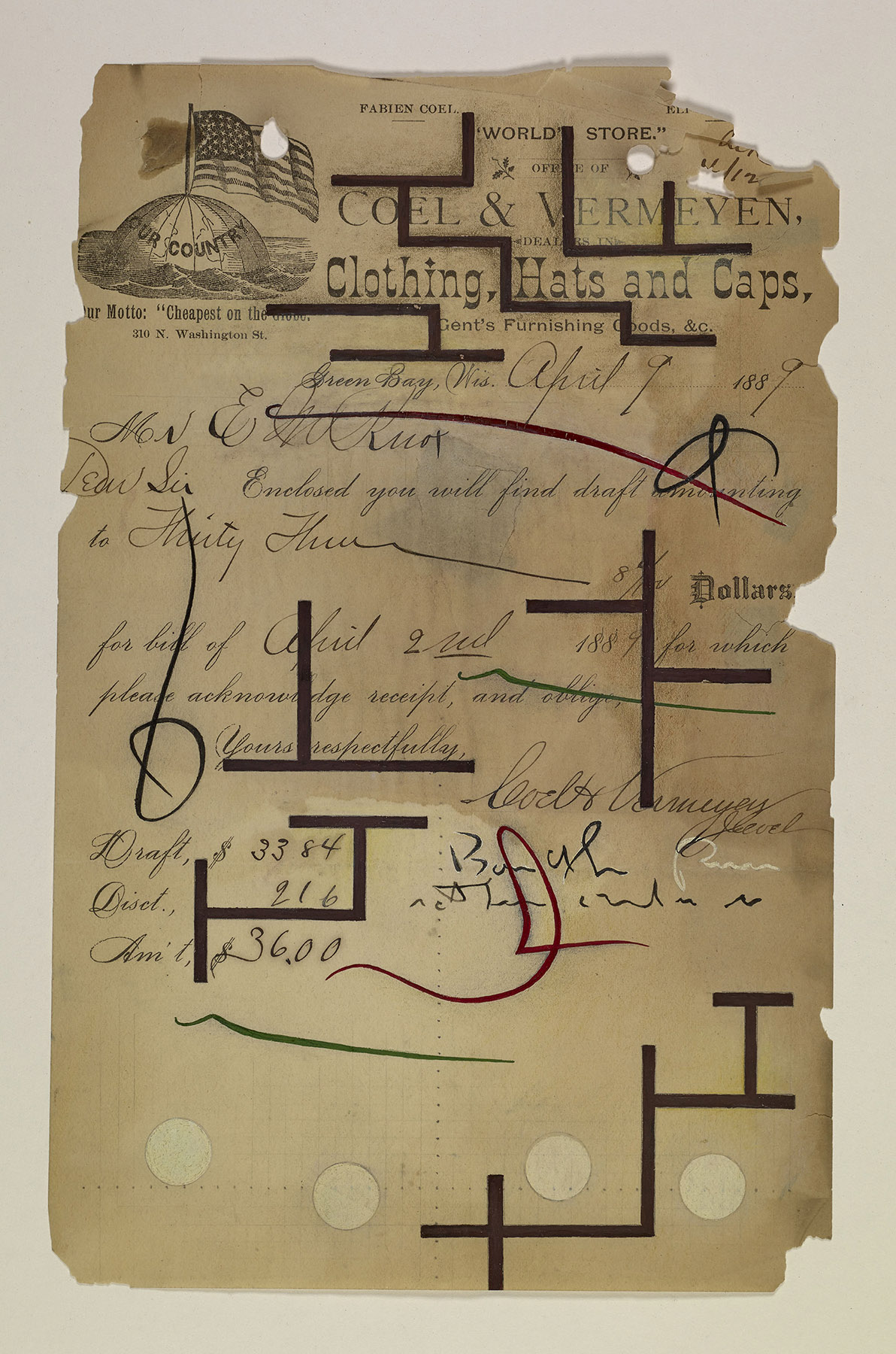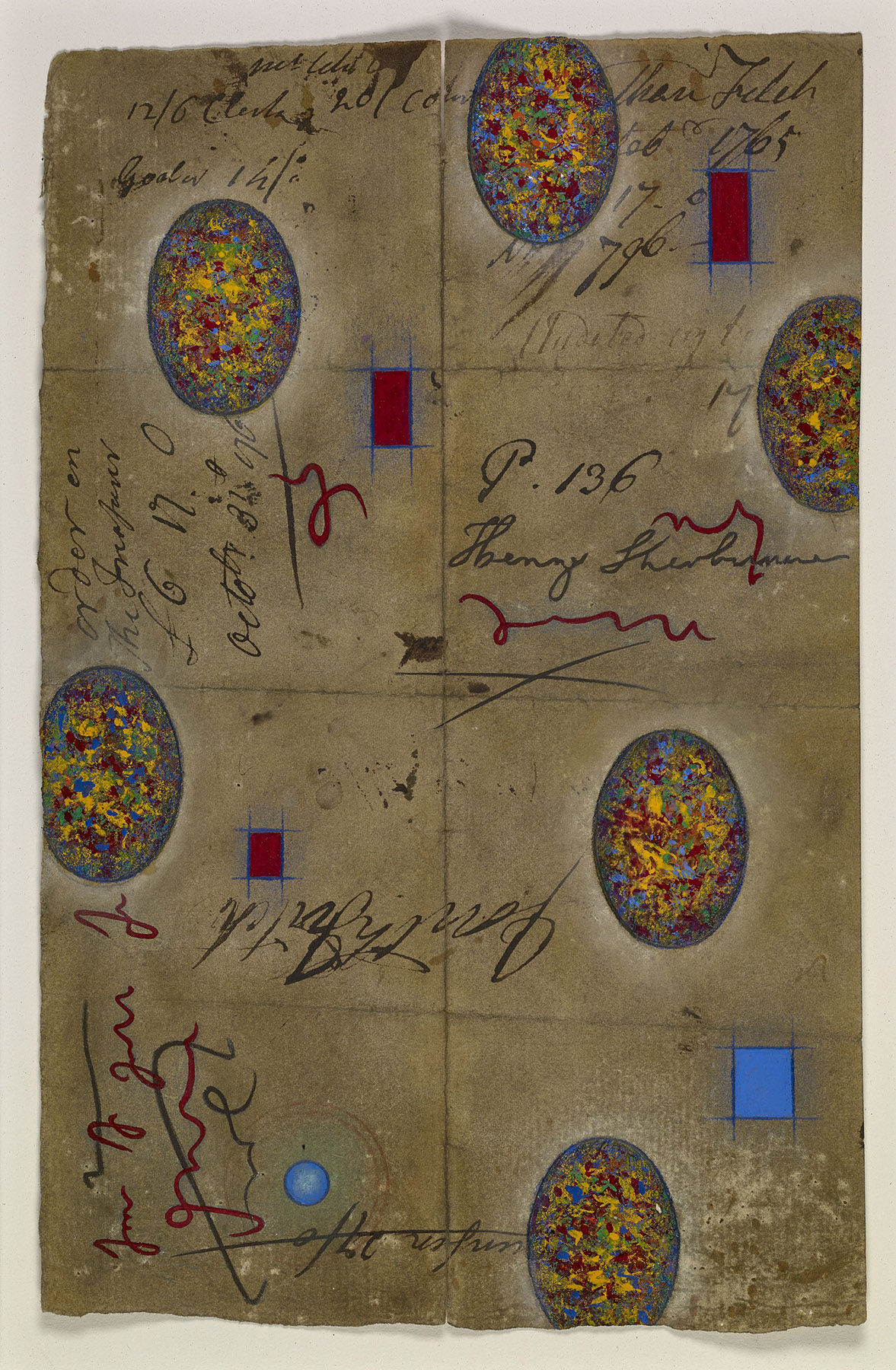 Untitled, Gouache, pencil, found paper document, 12" x 14 1/2", 2007 (DNA-07-925)